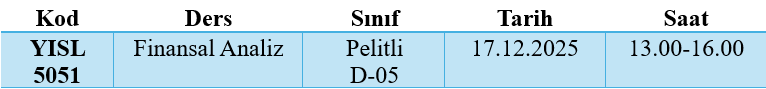 YISL 5051 FİNANSAL ANALİZ DERSİ TELAFİ PROGRAMI